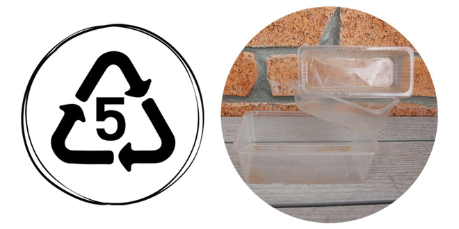 Nhựa có nhãn số 5 là PP (Polypropylene) thường được dùng làm hộp các sản phẩm thực phẩm có màu sắc bắt mắt như kem, siro, sữa chua. Đó là bởi nhựa PP có màu trắng, dễ nhuộm và trang trí. Ưu điểm của PP là nó có khả năng chịu nhiệt tốt, nên sẽ không tan chảy hoặc phát hành hóa chất nếu dùng để đựng thực phẩm ở nhiệt độ cao.