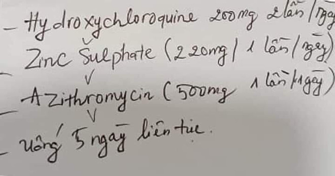Không chỉ có Tylenol, nhiều người cũng chia sẻ thông tin bài thuốc được quảng cáo là đơn thuốc của cựu Tổng thống Mỹ khi mắc Covid-19. Đơn thuốc gồm Hydroxychloroquine 200 mg uống 2 lần/ngày, Zincsulphate 220 mg/lần/ngày, Azithromycin 500 mg/lần/ngày. Các thuốc này được hướng dẫn uống 5 ngày liên tục.