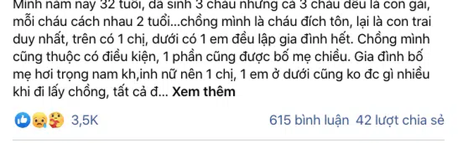 Lúc lấy chồng thì mình không biết những việc này, sau này ở cùng, mới phát hiện ra, phát sinh rất nhiều thứ. Lúc đầu ông bà cũng chiều mình, mỗi lần bầu là cho ăn cho uống đủ thứ nhưng biết con gái là bắt đầu thái độ khác hẳn.