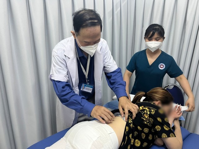 Sau đó, người bệnh thấy mệt mỏi và đau lưng nên đi bấm huyệt, bẻ khớp ở một cơ sở tại TP Thủ Đức. Trong lúc thực hiện, bệnh nhân đau nhói ở vùng thắt lưng phải nhưng nhân viên spa nói "không sao" và tiếp tục "bẻ khớp". Sau buổi trị liệu thứ hai, người phụ nữ đau nhiều hơn, không đi lại được, khó thở, mệt mỏi, khám tại Bệnh viện 1A.