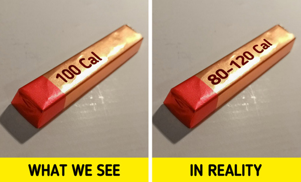 Lượng dinh dưỡng được niêm yết. Theo quy tắc, lượng dinh dưỡng được công bố trên nhãn thực phẩm được phép sai số, thậm chí chênh lệch đến 20%. Chẳng hạn, lượng calo được niêm yết là 100 song thực tế nó có thể dao động từ 80-120.