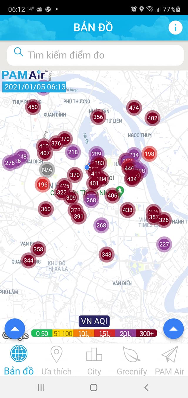 Ngay từ buổi sáng (khoảng hơn 6 giờ sáng), khi mật độ lưu thông ngoài đường chưa cao, các chỉ số đo chất lượng không khí tại Hà Nội đo được qua hệ thống PAM Air đã ghi nhận ở mức trên 200 (mức rất xấu - cảnh báo sức khỏe khẩn cấp), nhiều nơi còn ở mức trên 400 (mức nguy hại - Báo động: có thể ảnh hưởng nghiêm trọng đến sức khỏe con người).