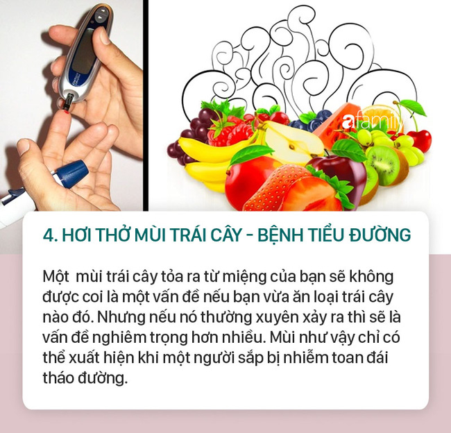 Hôi miệng không phải lúc nào cũng có nghĩa là do bạn vệ sinh răng miệng kém. Nó có thể là triệu chứng của một bệnh nào đó mà bạn không biết, thậm chí là bệnh không được điều trị. Mùi hơi thở của bạn có thể nói lên rất nhiều điều về các vấn đề sức khỏe của bạn, ví dụ, hơi thở của bạn phảng phất có mùi trái cây thì rất có thể là do bạn đang bị bệnh tiểu đường.