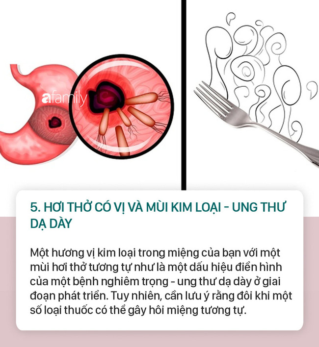Sau đây là danh sách 10 bệnh có biểu hiện liên quan đến mùi hơi thở. Hãy lưu ý và nếu phát hiện hơi thở của bạn có mùi như này thì nên đặt hẹn với bác sĩ ngay bởi đó có thể là triệu chứng của một bệnh nghiêm trọng nào đó.