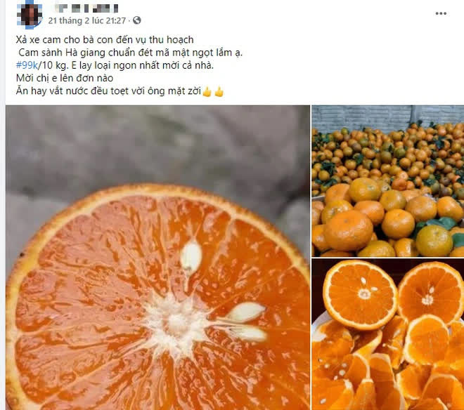 Không chỉ có được bán rong trên vỉa hè, các chợ cóc mà trên chợ mạng, cam sành Hà Giang cũng được rao bán rầm rộ, giá chỉ từ 6k/kg. Theo chia sẻ của nhiều khách hàng, cam ăn khá ngon, ngọt và tươi, không phải hàng kém chất lượng như nhiều người lầm tưởng.