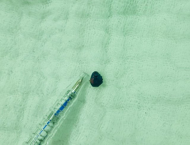 Đến sáng 7/10, ông T. đưa cháu K. đến thăm khám tại Bệnh viện Đa khoa Vĩnh Đức. Tại đây, các bác sĩ soi ống tai phải của K. và lấy ra ngoài một hạt đất sét dẻo màu xanh bằng hạt đậu phộng. Hiện, sức khỏe của cháu K. ổn định.