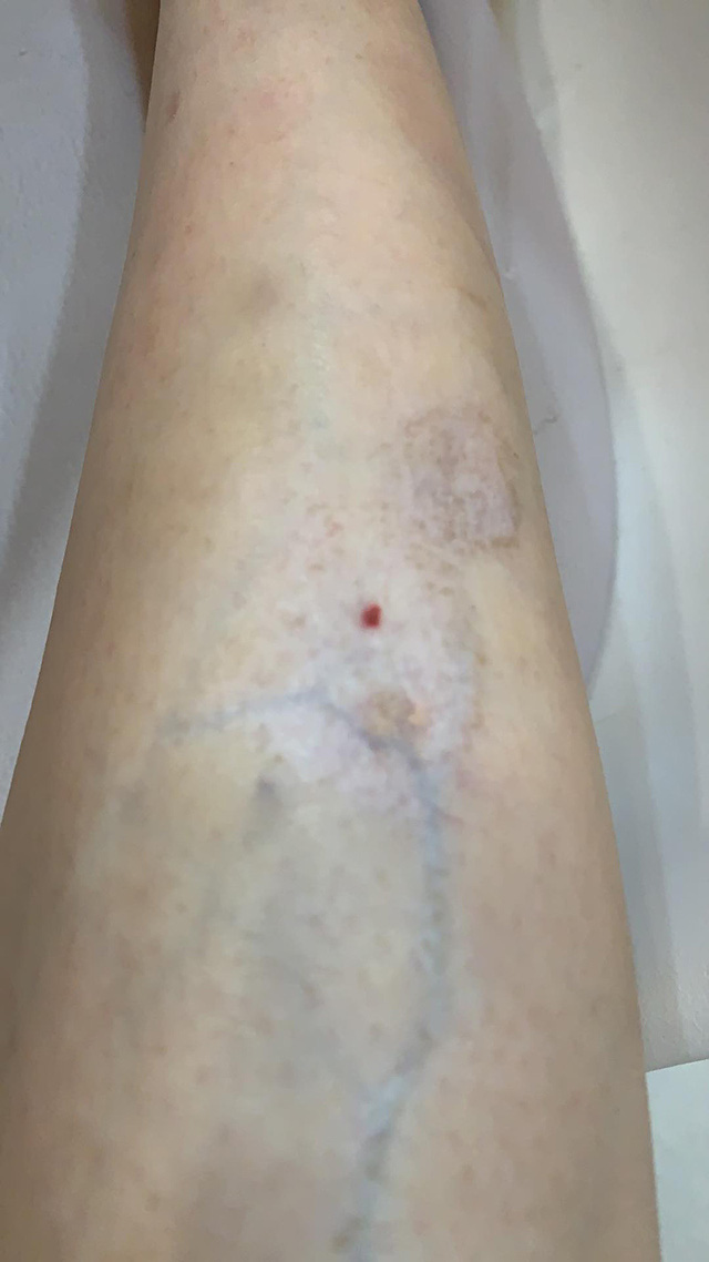 "Ngày 13/6/2019 mình có đến một cơ sở thẩm mỹ trên địa bàn Hà Nội để thực hiện tiêm filler môi… Sau khi tiêm môi xong, chuyên viên của thẩm mỹ viện - người trực tiếp phụ trách về tiêm filler, botox... có hỏi mình tại sao chân có vết thâm? Có muốn làm cho vết thâm mờ đi, để chân trắng không tì vết không. Vết ở chân này rất bé, do nó bị muỗi đốt. Mình đồng ý tiêm. Giá dịch vụ này là 1,5 triệu.