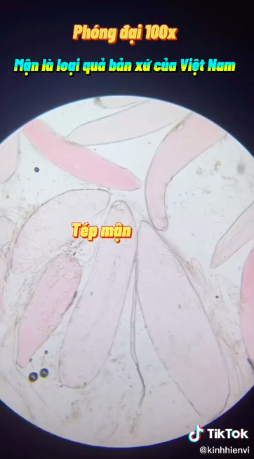 Để giải đáp thắc mắc đó, một tài khoản Tik Tok nổi tiếng đã thực hiện soi quả mận dưới kính hiển vi. Thật bất ngờ, khi soi quả mận ở mức độ phóng đại 100 lần, có thể thấy các tép mận phóng to vô cùng đẹp mắt, hoàn toàn không hề chứa vi khuẩn, côn trùng. Ở mức phóng đại này có thể thấy trong mận chứa rất nhiều vitamin tốt cho sức khỏe. Ở mức phóng đại 400 lần, không hề phát hiện chất béo, vì vậy ăn mận sẽ không hề khiến chúng ta gia tăng nguy cơ tăng cân.