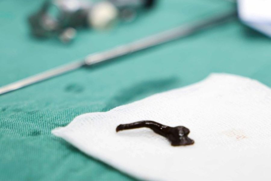 Qua thăm khám cận lâm sàng kết hợp nội soi thanh quản ống mềm, các bác sĩ phát hiện dị vật là một con vắt sống ký sinh trong đường thở của cháu C. nên tiến hành nội soi gắp con vắt rừng ra ngoài.