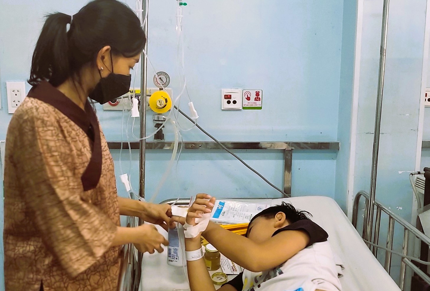 Ban đầu, chị Dung cho rằng con bị viêm họng. Tuy nhiên, ngày hôm sau, khi thấy con trai li bì, nôn ói nhiều, không chịu chơi, đánh thức rất khó, chị nhận thấy đây là những dấu hiệu bất thường. Ngay lập tức, chị thuê xe từ Bạc Liêu đưa con lên thẳng TP.HCM. “Khi vào đến Bệnh viện Nhi đồng 1, con gần như hôn mê, mơ màng”, chị Dung tâm sự.