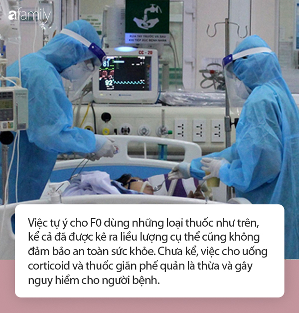 Thêm vào đó, việc tự ý cho F0 dùng những loại thuốc như trên, kể cả đã được kê ra liều lượng cụ thể cũng không đảm bảo an toàn sức khỏe. Chưa kể, "việc cho uống corticoid và thuốc giãn phế quản là thừa và gây nguy hiểm cho người bệnh", BS Hùng Ngô khẳng định.