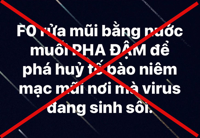 Những ngày gần đây, một tài khoản thu hút nhiều người dùng mạng theo dõi đã đăng tải status kêu gọi "F0 rửa mũi bằng nước muối pha đậm để phá hủy tế bào niêm mạc mũi nơi mà virus đang sinh sôi".