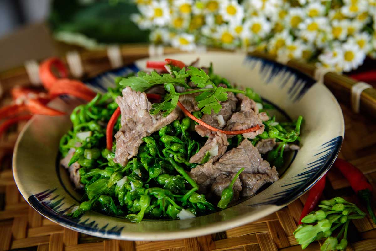 Cách làm: Lấy hoa thiên lý xào với thịt bò. Món ăn tuy đơn giản nhưng có hương vị rất thơm ngon và có tác dụng tốt trong việc giảm đau nhức xương khớp.