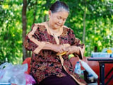 Buổi tối, dưới ánh đèn mờ, bà lão vẫn lom khom lựa lại từng món, nhặt lên xem rồi đặt xuống, không nỡ bỏ đi.