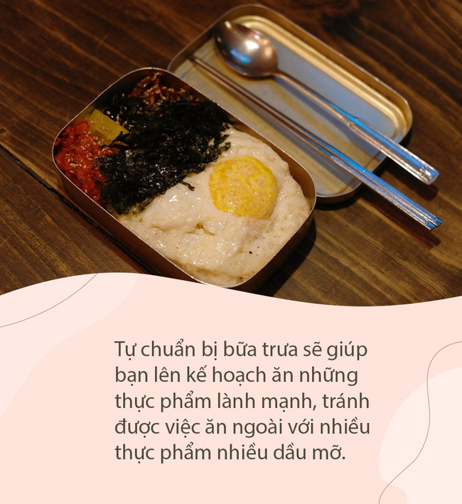 Cụ thể, việc tự chuẩn bị bữa trưa sẽ giúp bạn lên kế hoạch ăn những thực phẩm lành mạnh, tránh được việc ăn ngoài với các món nhiều dầu mỡ, chiên xào quá lửa. Chưa kể bữa ăn làm tại nhà cũng rẻ hơn, giúp bạn tiết kiệm được một khoản kha khá vào mỗi tháng.