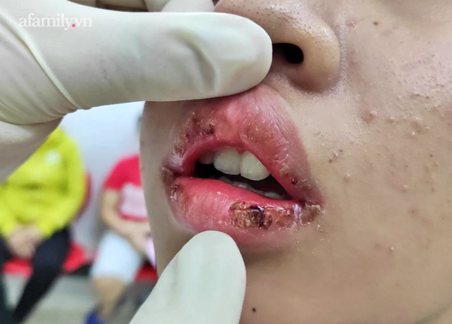 Nữ bệnh nhân tên N.T.B.N. (15 tuổi, ngụ Đồng Nai) được mẹ đưa đến BV trong tình trạng môi khô, sưng, ngứa, mưng mủ, đóng mài, rỉ máu.