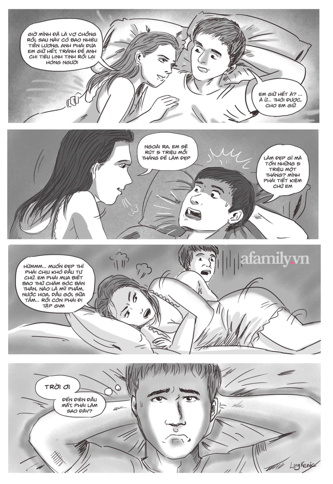Đêm tân hôn, sau khoảnh khắc nồng nàn tình cảm, tôi và vợ nằm tâm sự về cuộc sống sau này. Nói tới chuyện kinh tế, vợ đòi tôi đưa hết tiền lương cho cô ấy giữ, chỉ để lại một phần nhỏ chi tiêu cá nhân. Dù không thoải mái lắm nhưng tôi vẫn đồng ý.