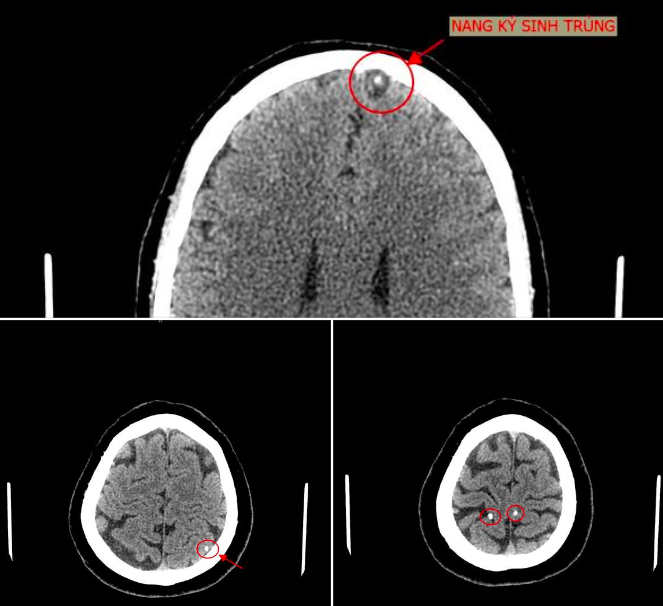 Bệnh nhân vào Trung tâm Y tế Tân Sơn (Phú Thọ) ngày 23/6. Bác sĩ khoa Chẩn đoán hình ảnh kết luận trong sọ não bệnh nhân có hình ảnh nang ký sinh trùng (ấu trùng sán não). Bệnh nhân cho biết bản thân có thói quen ăn đồ sống như gỏi cá.