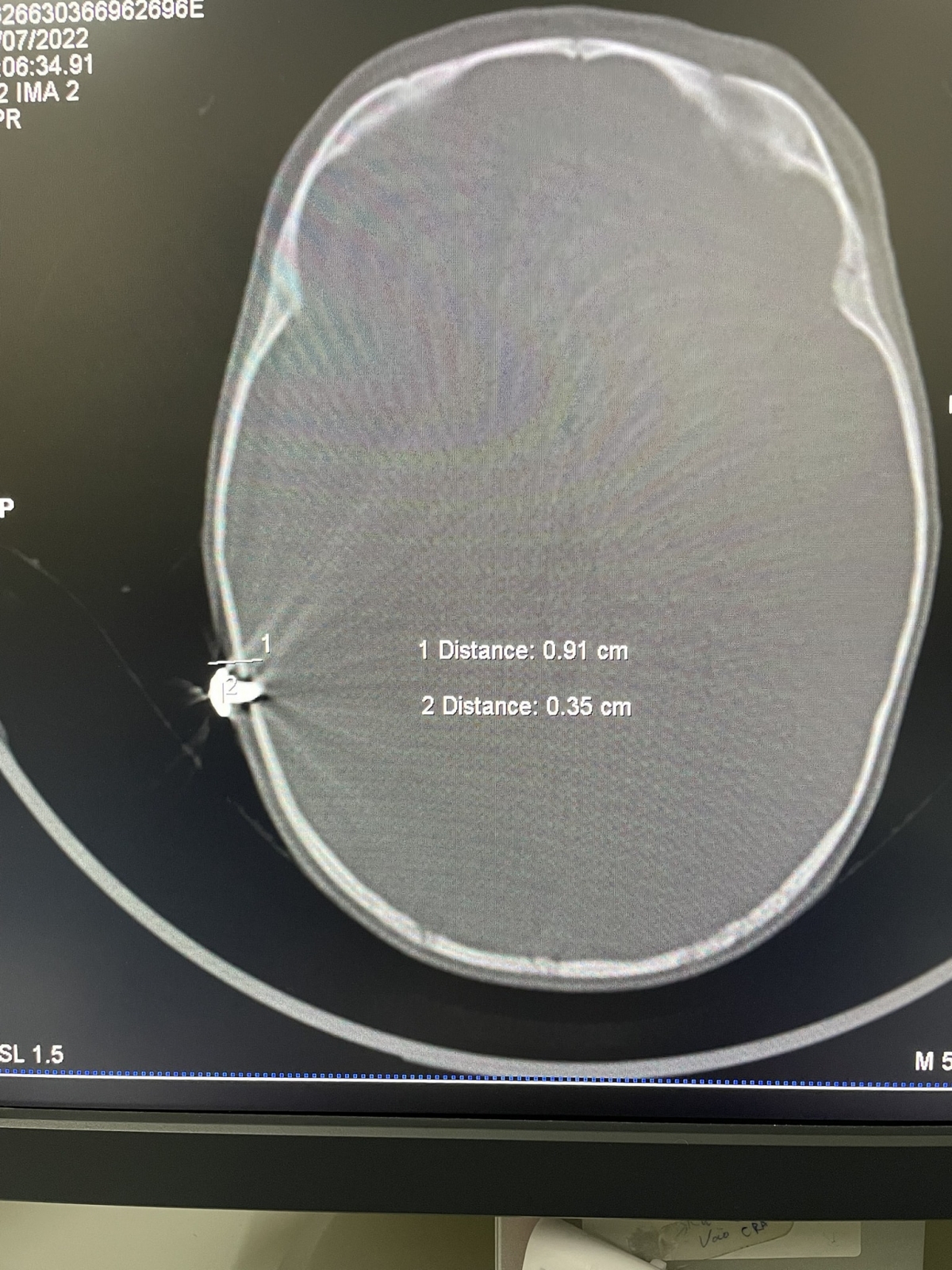 Rất nhanh chóng, bệnh nhi được chụp cắt lớp vi tính sọ não xác định mức độ tổn thương, thăm khám lâm sàng cùng các xét nghiệm và hội chẩn toàn viện mổ cấp cứu tháo đinh. Ngay sau đó, các bác sĩ đã khẩn trương phẫu thuật cho cháu bé, lấy ra chiếc đinh dài 9 mm. Hiện, cháu bé được chuyển phòng hậu phẫu theo dõi tiếp tình trạng toàn thân.