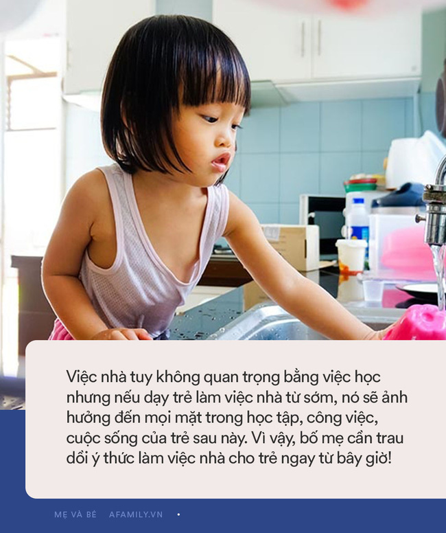 Việc nhà tuy không quan trọng bằng việc học nhưng nếu dạy trẻ làm việc nhà từ sớm, nó sẽ ảnh hưởng đến mọi mặt trong học tập, công việc, cuộc sống của trẻ sau này. Vì vậy, bố mẹ cần trau dồi ý thức làm việc nhà cho trẻ ngay từ bây giờ!