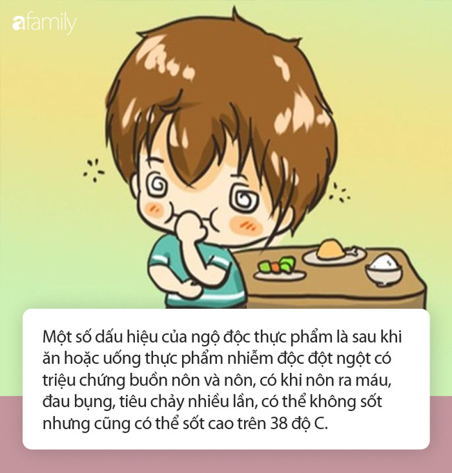 - Thấy trẻ có những dấu hiệu bị ngộ độc thực phẩm, phải ngừng ngay không ăn món đó nữa.