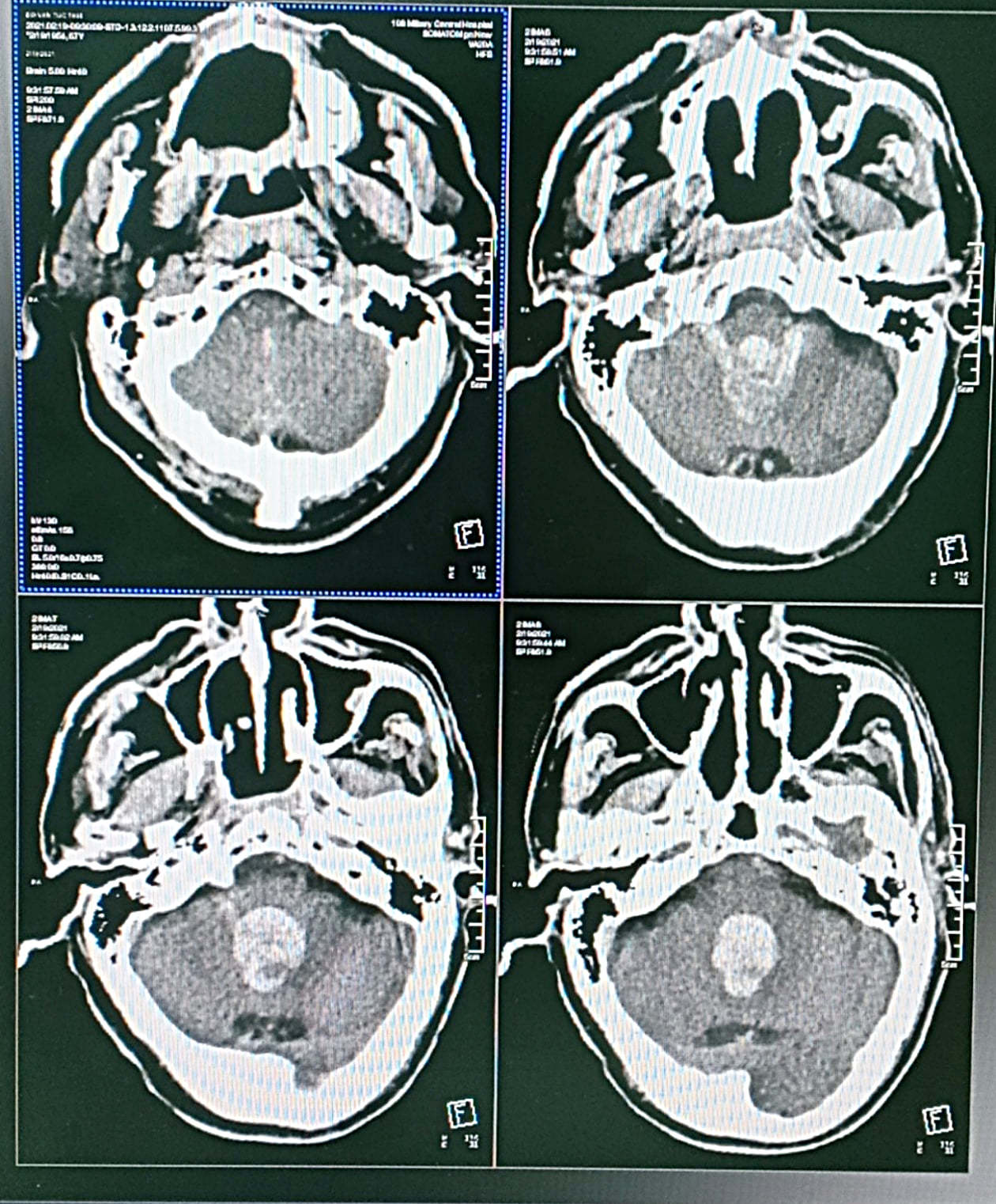 Bệnh nhân được tuyến dưới chẩn đoán đột quỵ, chuyển đến Bệnh viện Trung ương Quân đội 108 trong tình trạng hôn mê sâu, gọi hỏi không đáp ứng, thở máy, tiên lượng đe doạ tử vong.