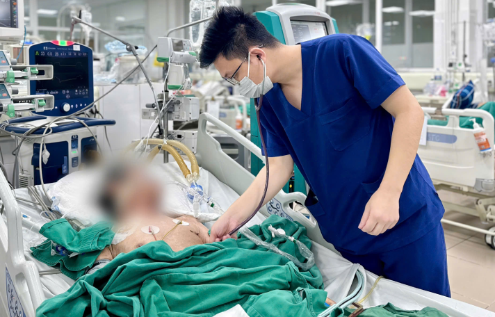 Khi chuyển đến Trung tâm Hồi sức tích cực, Bệnh viện Bệnh Nhiệt đới Trung ương, ông M. đã rơi vào suy hô hấp nặng, rối loạn toan chuyển hóa, phải đặt nội khí quản, thở máy, dẫn lưu ổ mủ và hồi sức tích cực. Dù có dấu hiệu đáp ứng ban đầu, tình trạng của ông vẫn rất nặng do ascended-descended từ hệ miễn dịch suy yếu và nền bệnh phức tạp.