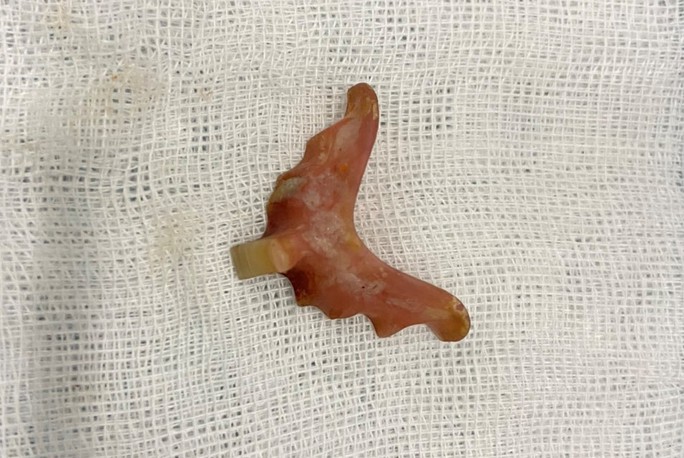 Do cấu tạo của hàm răng giả có nhiều mấu nên bám rất chặt vào thực quản, khiến quá trình nội soi gặp nhiều khó khăn so với các dị vật thông thường khác. Tuy vậy, ca nội soi diễn ra thành công sau khoảng 20 phút, dị vật được lấy ra là hàm răng giả có kích thước khoảng 2 x 4cm.