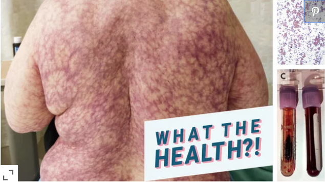 Người phụ nữ này đã đến một phòng khám ngoại trú sau khi bị phát ban đỏ sẫm, đỏ tía bùng phát khắp lưng. Phát ban xuất hiện sau khi bà bị nhiễm trùng đường hô hấp do virus. Ngoài phát ban toàn thân, bệnh nhân cũng bị chóng mặt khoảng một tuần.