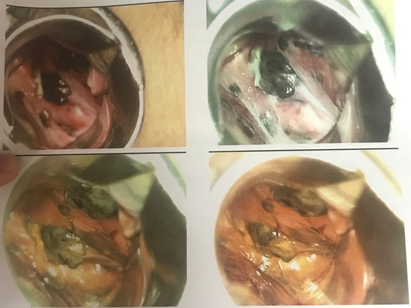 Qua khám phụ khoa và và soi cổ tử cung, bác sĩ nhận thấy âm đạo và cổ tử cung bệnh nhân kém mềm mại. Từ cổ tử cung tới 1/3 ngoài âm đạo có tổn thương sùi màu đen, nhiễm cứng, có mạch máu nhỏ tăng sinh sung huyết dễ chảy máu khi va chạm.