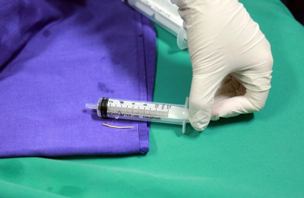 Sau gần 1 tiếng nỗ lực, tăm nhọn dài hơn 3cm đã được lấy ra thành công trong niềm vui của cả ê-kíp. Hiện, sức khỏe bệnh nhân ổn định, đỡ đau bụng, được chuyển về Khoa Ngoại tiếp tục theo dõi, điều trị kháng sinh chống viêm.