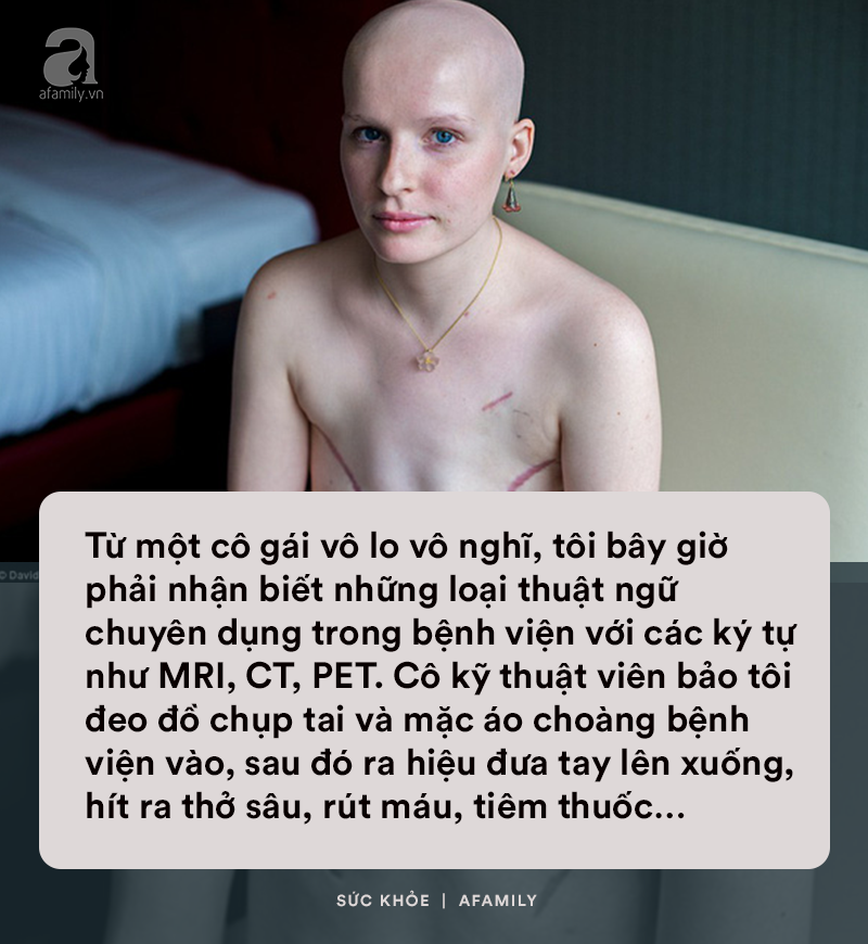 Từ một cô gái vô lo vô nghĩ, tôi bây giờ phải nhận biết những loại thuật ngữ chuyên dụng trong bệnh viện với các ký tự như MRI, CT, PET. Cô kỹ thuật viên bảo tôi đeo đồ chụp tai và mặc áo choàng bệnh viện vào, sau đó ra hiệu đưa tay lên xuống, hít ra thở sâu, rút máu, tiêm thuốc… Hàng loạt những thứ phải làm trong phòng X-quang biến tôi thành một "thứ" chỉ còn biết đến ánh sáng và bóng tối.