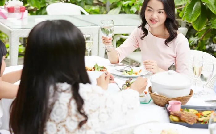 Tối hôm qua, Lan mời gia đình tôi đến dùng cơm, bởi em ấy được thăng chức. Chúng tôi đến thì vợ chồng em ấy đã dọn sẵn cơm trên bàn, mọi người chỉ việc ngồi vào bàn ăn.