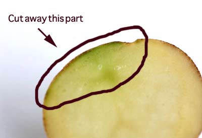Nếu cắt ra thấy bên trong quả đã bị thối rữa hoặc hạt có màu xanh thì chị em hãy vứt ngay vào thùng rác, đừng dại ăn kẻo rước độc tố vào người.