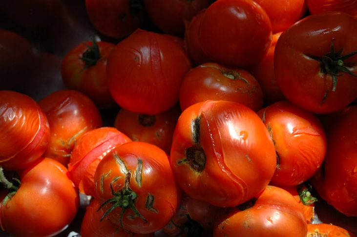 2. Cà chua có vỏ nhăn nheo hoặc bong tróc