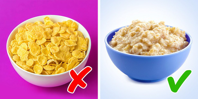 Ngũ cốc: Ngũ cốc là thực phẩm phổ biến được sử dụng cho bữa sáng vừa bổ dưỡng, vừa đơn giản lại tốt cho sức khỏe. Tuy nhiên, không phải tất cả các loại ngũ cốc đều mang lại lợi ích, điển hình là ngũ cốc đã qua tinh chế. Loai ngũ cốc này làm mất đi một lượng đáng kể chất xơ và các chất dinh dưỡng giúp bạn no lâu. Chưa kể lượng đường được thêm vào ngũ cốc là nguyên nhân gây ra bệnh tiểu đường , bệnh tim và béo phì.