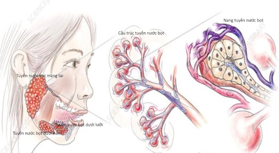 Tuyến nước bọt là nơi để tạo ra nước bọt, tiết nước bọt, giúp tiêu thụ thức ăn bằng cách nhai và nuốt, làm sạch vùng miệng.
