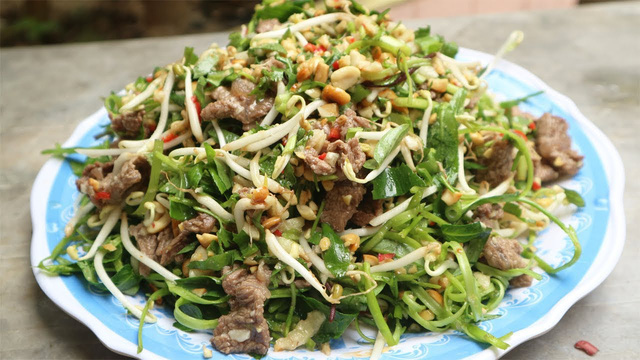 Gỏi rau muống thịt bò, vừa có đạm, vừa có rau, rau muống lại luôn sẵn quanh năm nên việc đổi món này sẽ khiến cả nhà được "giải nhiệt" sau Tết.