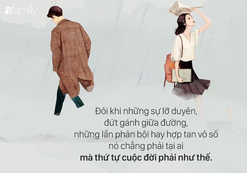 Đôi khi những sự lỡ duyên, đứt gánh giữa đường, những lần phản bội hay hợp tan vô số nó chẳng phải tại ai mà thứ tự cuộc đời phải như thế. Quan trọng vẫn là cách chúng ta nhìn nhận thế nào mà thôi.