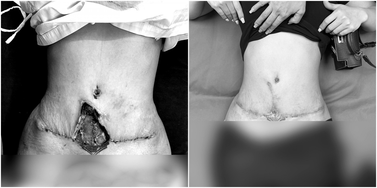 Sau khoảng 3 tuần, chúng tôi đã tiến hành phẫu thuật lại và đặc biệt tránh để lại sẹo nhiều nhất có thể. Chúng tôi đã huy động vùng da sau lưng để kéo về vùng bụng tổn thương. Hiện tại, vùng tổn thương của bệnh nhân đã hoàn toàn ổn định. Bệnh nhân và người nhà đều đã yên tâm hơn.
