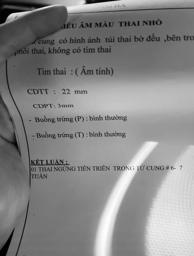Thế nhưng đã qua 5 lần siêu âm rồi, mẹ vẫn không có được niềm vui ấy. Mẹ xin bác sĩ thêm 1 tuần cuối cùng chờ đợi, nhưng phép màu không xuất hiện. Ba mẹ và các chị sẽ luôn nhớ và yêu con, thiên thần của gia đình".
