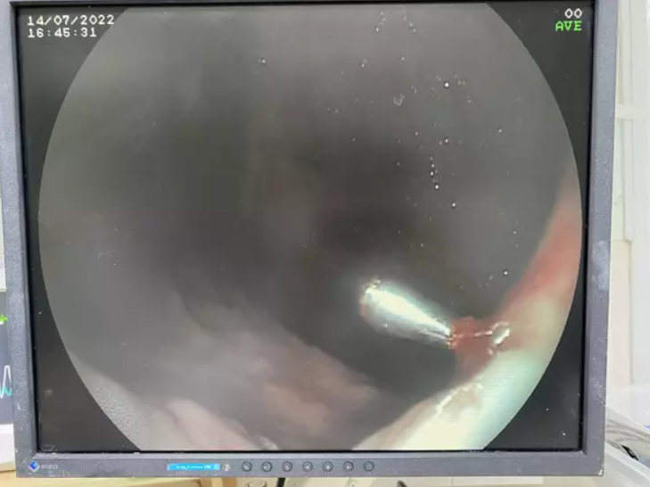 Theo VTV, sau khi nội soi, các bác sĩ thấy trong dạ dày nạn nhân có rất nhiều máu và vết tổn thương dài 3cm ở vùng tâm vị của dạ dày, đang chảy máu ồ ạt do bị mảnh vỡ thủy tinh cắt.