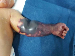 Bệnh nhi sinh non 33 tuần tuổi bị hội chứng chèn ép khoang khiến cánh tay sưng, phù, đỏ tím, có những mảng da màu đen có dấu hiệu hoại tử đã được các bác sĩ cấp cứu thành công.
