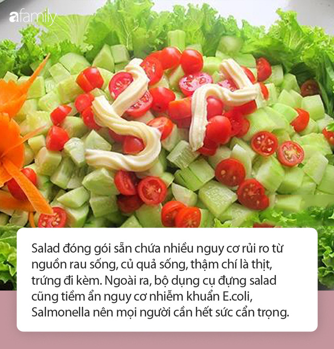Giới chuyên gia nhận định, người tiêu dùng và cả những chủ cửa hàng nên vứt bỏ bộ đựng salad vì nguy cơ nhiễm vi khuẩn nếu dùng lại để đóng hàng cho những lần sau. Tuần trước, Tailor Cut Produce tuyên bố họ đang thu hồi hỗn hợp salad Fruit Luau gồm dưa đỏ, dứa, nho vì lo ngại nhiễm khuẩn Salmonella.