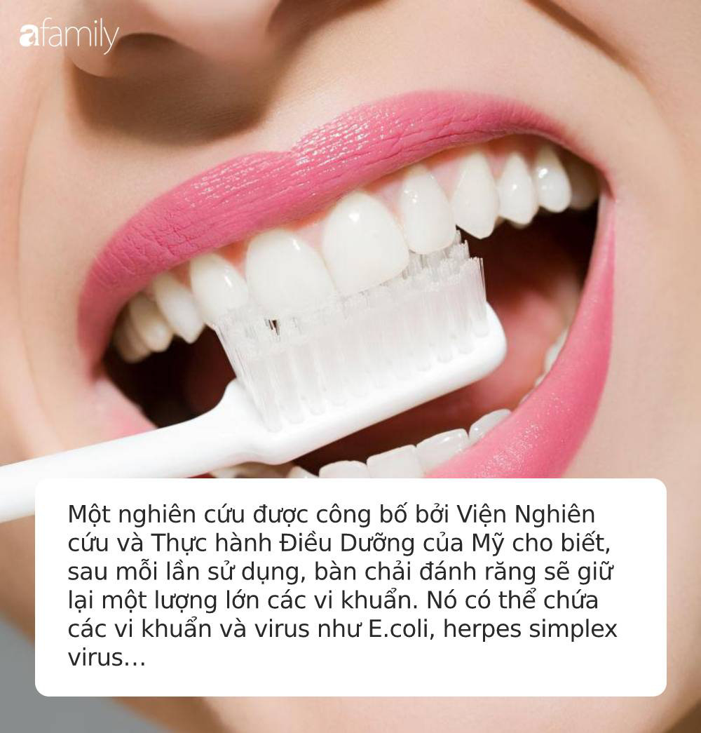 Một nghiên cứu được công bố bởi Viện Nghiên cứu và Thực hành Điều Dưỡng của Mỹ cũng cho biết, sau mỗi lần sử dụng, bàn chải đánh răng sẽ giữ lại một lượng lớn các vi khuẩn. Nó có thể chứa các vi khuẩn và virus như: E.coli, herpes simplex virus… Việc dùng chung bàn chải đánh răng có thể lây nhiễm chéo các virus, có thể làm tăng mức độ vi khuẩn trong máu của bạn.