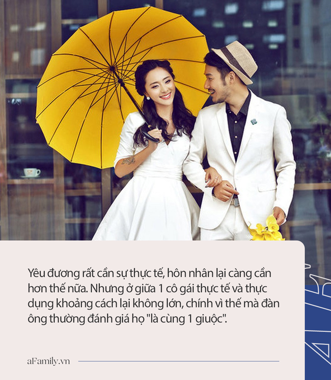 Yêu đương rất cần sự thực tế, hôn nhân lại càng cần hơn thế nữa. Nhưng ở giữa 1 cô gái thực tế và thực dụng khoảng cách lại không lớn, chính vì thế mà đàn ông thường đánh giá họ "là cùng 1 giuộc".