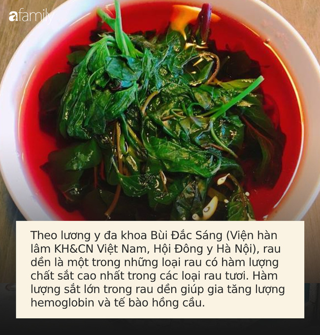 - Bổ máu: Theo lương y đa khoa Bùi Đắc Sáng (Viện hàn lâm KH&CN Việt Nam, Hội Đông y Hà Nội), rau dền là một trong những loại rau có hàm lượng chất sắt cao nhất trong các loại rau tươi. Hàm lượng sắt lớn trong rau dền giúp gia tăng lượng hemoglobin và tế bào hồng cầu. Chính vì thế đây là thực phẩm rất có lợi cho bệnh nhân thiếu máu.