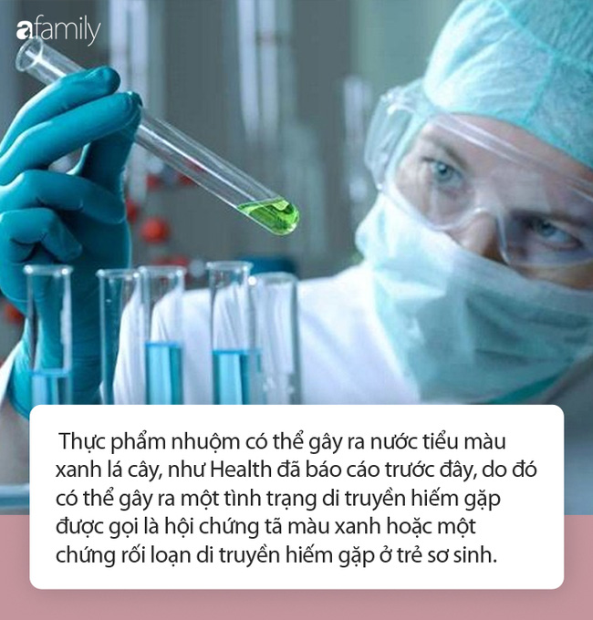 Những loại thực phẩm có chứa hóa chất phẩm màu mà cơ thể không hấp thụ được, dẫn đến đào thải qua nước tiểu cũng có thể khiến nước tiểu chuyển sang màu xanh.