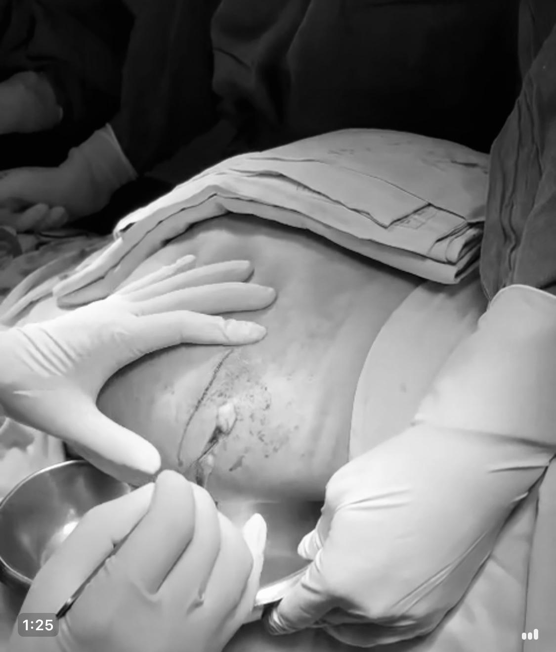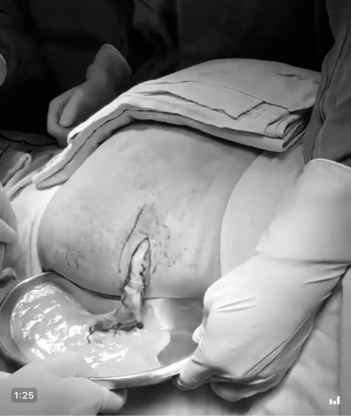 Bác sĩ nhận định cô gái bị nhiễm trùng hoại tử hết phần mô mỡ dưới da. Ê-kip phẫu thuật rạch và nặn ra 1 lít dịch lẫn mủ. Sau khi nạo hết phần nhiễm trùng, vòng 3 cũng biến dạng.