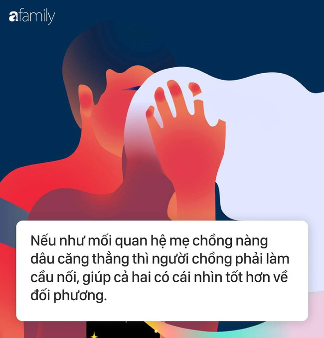 Phụ nữ khi kết hôn ai mà chẳng muốn được yêu thương. Nếu như mối quan hệ mẹ chồng nàng dâu căng thẳng thì người chồng phải làm cầu nối, giúp cả hai có cái nhìn tốt hơn về đối phương. Chồng mà chẳng biết bảo vệ vợ thì phụ nữ hết lòng cho anh ta thật sự quá thiệt thòi.